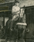 Rider's name, unknown. An Actor, shown with Rubye presenting the Official News bag (1944)